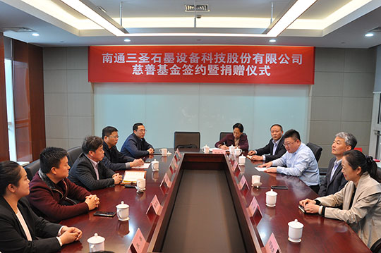 2020年4月21日,“南通三圣石墨設(shè)備科技股份有限公司慈善基金簽約暨捐贈(zèng)儀式”在南通開(kāi)發(fā)區(qū)能達(dá)大廈401會(huì)議室召開(kāi),該項(xiàng)基金將主要用于開(kāi)發(fā)區(qū)安老扶幼、助學(xué)助醫(yī)、扶貧賑災(zāi)、助殘濟(jì)困、公益環(huán)保等慈善公益事業(yè),推動(dòng)該區(qū)慈善事業(yè)的健康發(fā)展。